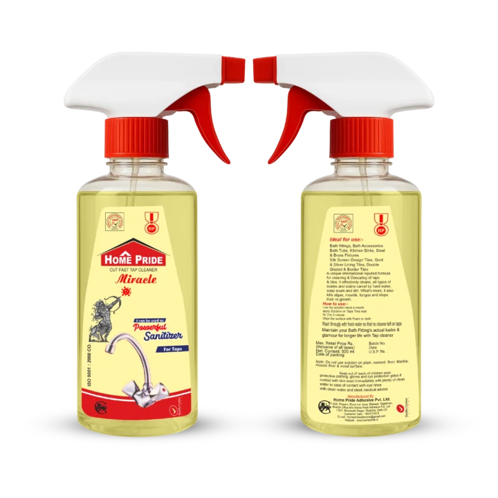 Tap cleaner by Home Pride Cutfast removes stains and water marks from taps. It restores shine on chrome plated fittings. This cleaner improves bathroom and kitchen appearance. It delivers quick cleaning results. What Is Taps Cleaner Tap cleaner is a surface cleaning chemical. It removes limescale, dirt, and water stains. The cleaner works on chrome plated surfaces safely. It simplifies regular maintenance.