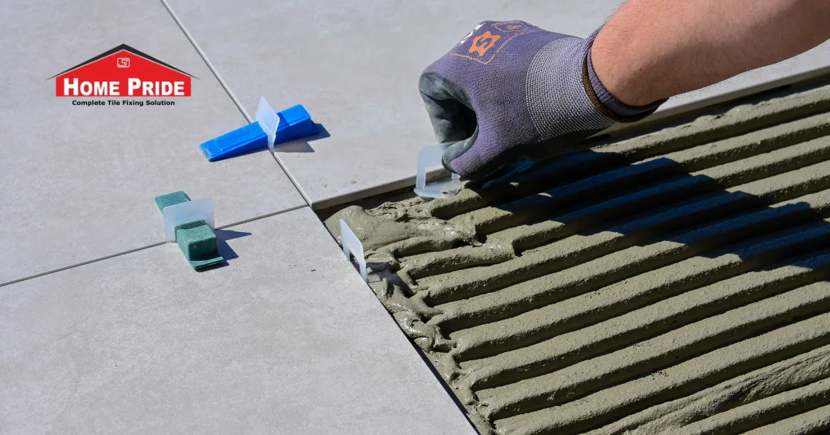 Apply Home Pride 1021 Tile Adhesive on the substrate with the flat side of the trowel. By the notch side of trowel Comb the additional adhesive on the substrate as per bedding thickness use the proper size notch trowel. Tile must be fixed within 10 minutes of adhesive applied, depending on the porosity of the surface and atmospheric condition. Apply adhesive on substrate surface as per tile fixing rate.